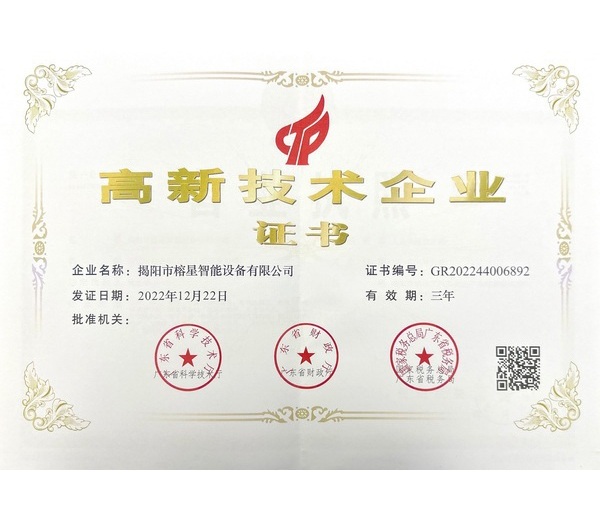 2004年即投身于玻璃深加工領(lǐng)域,我們以技術(shù)為核心競(jìng)爭(zhēng)力,自主研發(fā)了玻璃交叉切割機(jī)等技術(shù),榮獲多項(xiàng)專(zhuān)利證書(shū)。2019年至2022年,“榕星智能設(shè)備”陸續(xù)成立有限公司、工程技術(shù)中心、以及企業(yè)技術(shù)中心,并獲得國(guó)家高新技術(shù)企業(yè)稱(chēng)號(hào)。